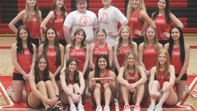 The West Hancock high school boys track team. First Row, left to right: Coach M. Sanger, Cooper McLaughlin, Kaden VanEpps, Gustavo Gomez, Reese Luedtke, Isaiah Collins, Ethan Gayken, Moses Johnson, Coach Bill Cook. 2nd Row: Arnold Meza, Trinity Cruise, Erick Barranca, Riley Gauden, Keagan Albertson, Carson Fox, Nathan Bixel, Caiden Squier, Gavin Wunder, Coen Witte, Wyatt Finch. 3rd Row: Brody Johnson, Brody DIxon, Jaxen Peterson, Preston Gayken, Ryker Haugland, Micahel Gretillat, Jacoby Subject, Giovanni Garcia, Cameron Fox, Eli Marchand, Josh Johnson. Back Row: Andrew Gomez, Jacob Burrs, Cristian Alonso-Lopez, Kipton Youngwirth, Gaige Tindall, Ty Harms, Gabriel Urista, Anthony SIsneros, Angel Sanchez. Picture from West Hancock Community School.