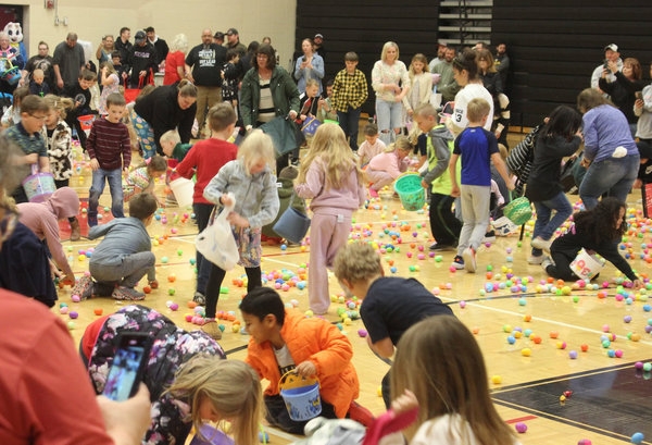 Although the blustery weather on Saturday forced the postponement of community Easter egg hunts in some communities, the hunt at Garner was relocated to the GHV high school gym! Hundreds of area youngsters turned out for the event which was hosted by the Garner Merchant Association and participating sponsors. Kids were divided into age groups. The colorful plastic eggs were scattered about the gymnasium floor and disappeared within seconds! (Egg shells were recycled for next year.) Prizes were awarded and costumed characters were on hand for photo opts! The Garner Merchant Association says "thank you" is looking forward to next year! Photo courtesy of Carter Gerdes